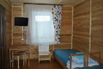 В каждом номере есть туалет, душ, телевизор, небольшой столик с табуретками. Привычный уют, безукоризненная чистота и порядок и, конечно, запах дерева – все это является неотъемлемыми составляющими любого номера Спортивной деревни.