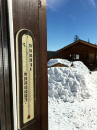 В течение дня небольшой плюс, иногда столбик термометра показывает на солнце до 25 градусов, ночью минусовые температуры.