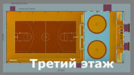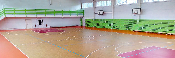Зал расположен на первом этаже и позволяет проводить занятия, тренировки или соревнования по основным игровым видам спорта.