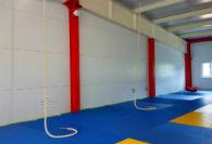 Так же в зале имеется возможность установки батута для отработки прыжковой техники или для дополнительной подготовки спортсменов.